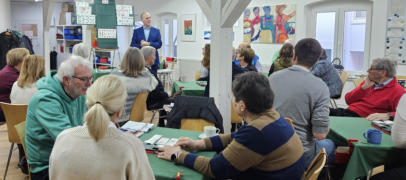Regionalliga-Saison ist gestartet: Lokalderbys im MittelpunktAm ersten Regionalliga-Wochenende standen die Lokalderbys zwischen unseren Teams Stuttgart 2, 3 und 4 im Mittelpunkt. Stuttgart 2 (Teamkapitän Matthias Rapp) begann das Wochenende standesgemäß mit einem 19:1-Sieg gegen Stuttgart 4 (Teamkapitän Klaus Rapp), schwächelte aber im zweiten Kampf gegen Stuttgart 3 (Teamkapitänin Uschi Röhrig) und lag zur Halbzeit sogar zurück. In der 2. Halbzeit drehte das Team aber groß auf und sicherte sich einen 14:6-Erfolg. Mit einem weiteren 19:1-Sieg gegen Göppingen steht Stuttgart 2 mit 52 Punkten nach drei Kämpfen auf Platz 2 der Tabelle, auf Tuchfühlung zu Spitzenreiter Schwäbisch Hall. Vom 4. bis zum 10. Platz liegen die Teams noch recht dicht beieinander. Stuttgart 3 erarbeitete sich Rang 6 mit 24 Punkten, Stuttgart 4 liegt mit 17 Punkten aktuell auf dem letzten Platz, trotz des 12:8-Erfolges gegen Stuttgart 3. Zu den Ergebnissen…Liga-Training im Club mit Klaus Reps kam hervorragend anFast 30 ehrgeizige Spiele-rinnen und Spieler kamen zum Liga-Training mit Klaus Reps. Die Köpfe rauchten ob der vielen Si-tuationen, in denen ein X am richtigen Platz ist. Der Workshop lässt erwarten, dass in den Clubturnieren in Zukunft deutlich mehr kontriert wird. Herzlichen Dank an unsere Sportwartin Christa Krätzer für die Organisation. Foto: U.MüllerChallenger-Cup 2026 von 10. bis 12. MärzWir spielen DI Abend, MI Abend und DO NachmittagDer Challenger Cup ist das große Breitensportturnier des DBV. Im Jahr 2026 findet er zum 16. Mal statt; auch in diesem Jahr wird er in drei Etappen ausgetragen. In den Clubs qualifizieren sich bei teilnehmenden 6 bis 14 Paaren: 1 Paar, bei 15 bis 22 Paaren: 2 Paare. Clubpunkte-Abrechnung für 2025 ist fertigUnsere Clubpunktesekretärin Katja Siehler hat die Abrechnung für das Gesamtjahr 2025 fertiggestellt. Bitte überprüfen und ggf. Änderungswünsche bis 15. Februar an sie melden. Zur Abrechnung 2025…Das Tischgeld für Realbridge-Turniere im Jahre 2025 wird in Kür-ze eingezogen. Bitte beachten: Das Club-Konto ist umgezogen.bk. 1.2.26